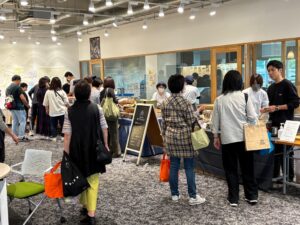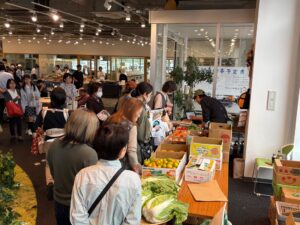 会場には、野菜、果物、パン・お菓子、ナッツ、ジャム・はちみつなど、様々な食品を扱う店舗が並び、買い物を楽しむ多くの人たちでにぎわいました。